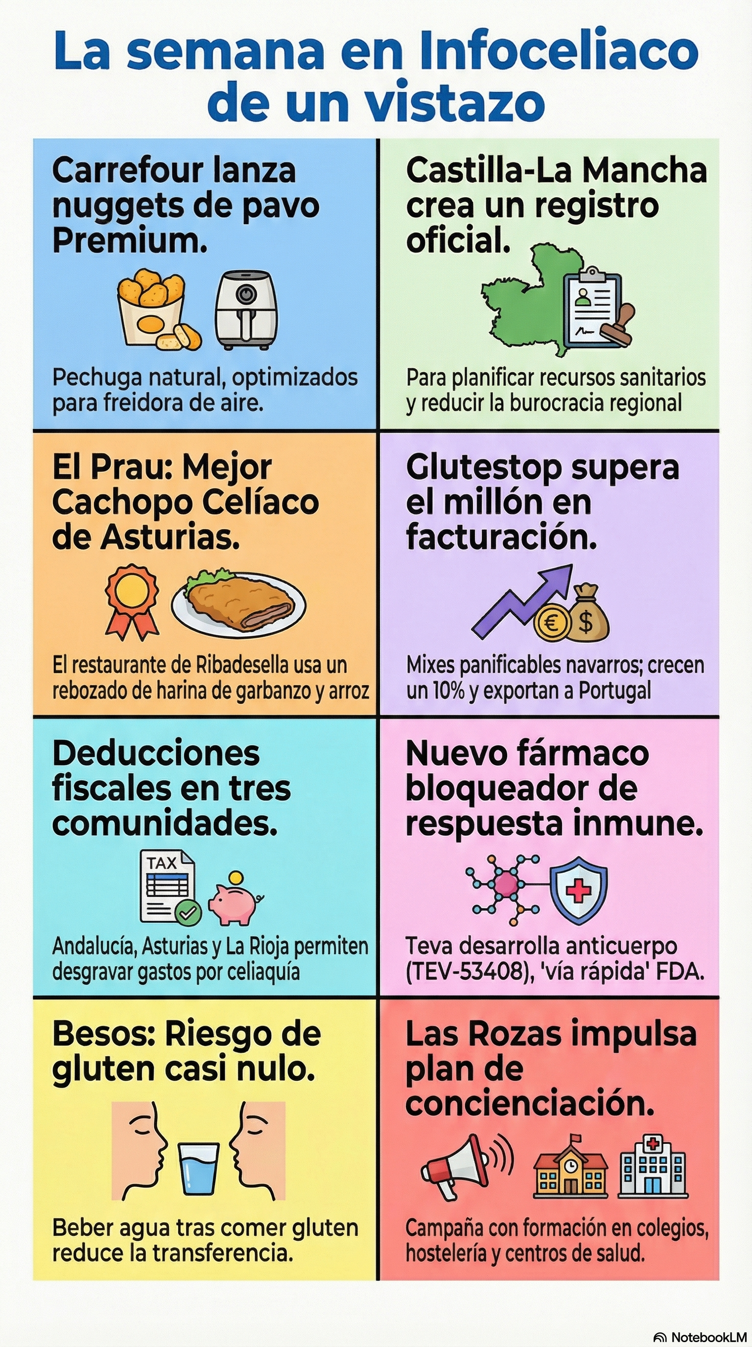 Arturo Cuervo La semana en Infoceliaco de un vistazo (10 de Abril de 2026)... Previous Article La Ruta de la Tapa Sin Gluten regresa a Badajoz con sorteos y premios Next Article La Caravana de Alimentos de Segovia tendrá su propia Feria Sin Gluten últimas noticias Nace "Asturcel", un aliado para los celíacos asturianos La Ruta de la Tapa Sin Gluten regresa a Badajoz con sorteos y premios La semana en Infoceliaco de un vistazo (10 de Abril de 2026)... Carrefour revoluciona el lineal sin gluten con sus nuevos nuggets de pavo de alta calidad Israel desarrolla un nuevo fármaco que pretende bloquear la respuesta inmune al gluten lo más visto Foster´s Hollywood cobra más por el agua para celíacos Un nuevo fármaco permite diagnosticar la celiaquía desde casa Mercadona venderá desde octubre la cerveza Ambar para celíacos La Junta de Comunidades de Castilla la Mancha convoca ayudas para enfermos celíacos Identifican una bacteria que neutraliza la toxicidad del gluten