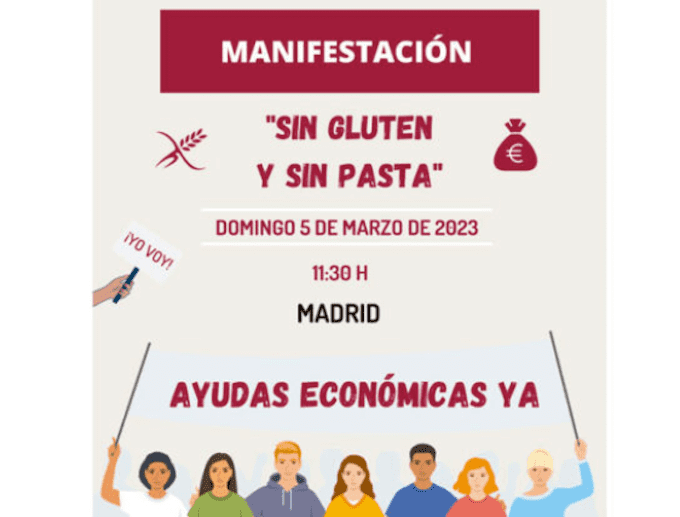 La Federación de Asociaciones de Celiacos de España, la Asociación de Celiacos y Sensibles al Gluten y la Asociación de Celíacos de Cataluña se han unido con el objetivo de reclamar ayudas económicas para el colectivo celíaco en España, a través de una gran manifestación que se celebrará el próximo 5 de marzo en Madrid, y a la que se han sumado muchas otras organizaciones procedentes de todo el país.