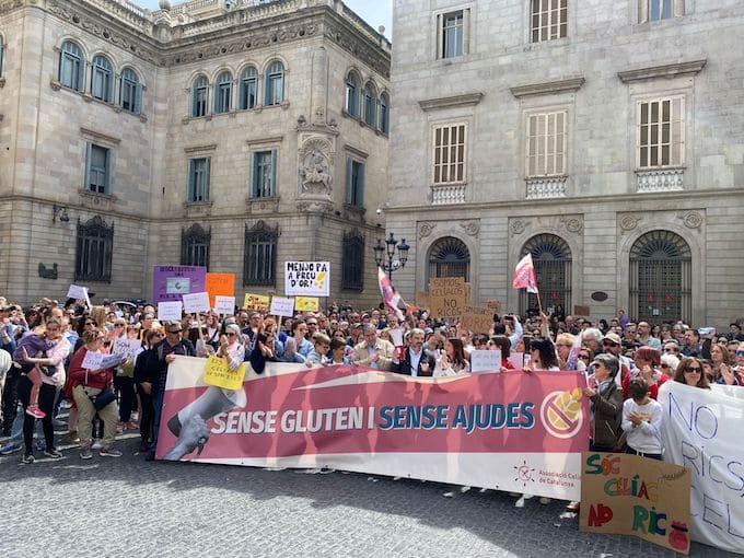 Un millar de celíacos se manifetaron en la mañana del 16 de abril en Barcelona, para reclamar ayudas económicas directas a las personas que padecen celiaquía y emplazar al Gobierno catalán a ejecutar de una vez por todas la quincena de resoluciones que han sido aprobadas por el Parlamento de Cataluña en los últimos nueve años y que nunca se han llegado a implementar.