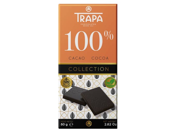 La compañía palentina Chocolates Trapa acaba de lanzar una nueva tableta de chocolate negro, en esta ocasión con un 100 % de cacao, que no contiene gluten entre sus ingredientes, por lo que es apta para celíacos, además de serlo también para el colectivo de veganos, y no contener ni grasas hidrogenadas, ni ácidos grasos trans, ni aceite de palma.