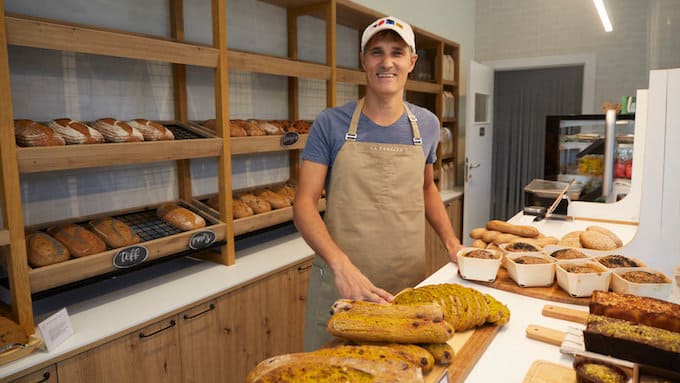 La base principal de los panes es la masa madre añadida a harina y agua. "Es un proceso lento, lo dejo toda la noche para que tenga mejores propiedades nutritivas", explica Xabi Oroz, que siempre busca productos de cercanía, reconociendo que "hay algunos más difíciles de conseguir, pero la sal, el aceite, los frutos secos, la harina de almendra sí que buscamos que sean de aquí".